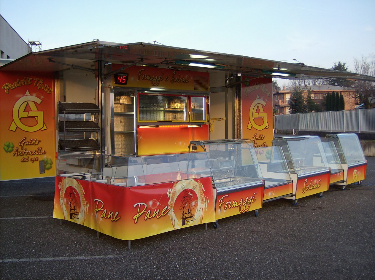 Il nostro è un prodotto all'avanguardia nel suo genere: pratico, leggero e studiato in ogni minimo articolare, costruito solo con materiali inattaccabili nel tempo e senza lasciare nulla al caso. La cura per il particolare e la praticità nelle soluzioni sono le nostre priorità, così come il rispetto delle normative e l'attenzione all'impiantistica, aspetto cruciale in mezzi così complessi. Allestimenti per la vendita di generi alimentari di ogni genere, coperture con sportelli, prolunghe e tetti scorrevoli, la nostra esperienza spazia nei vari settori dell’autonegozio, sia con banco tradizionale che con banchi a terra.